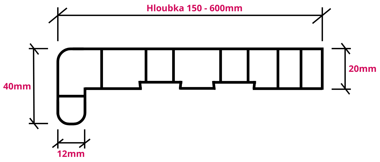 - Pro hloubku do 300 mm: 1 ks (600 mm – oboustranná krytka, možnost seříznout na libovolný rozměr)